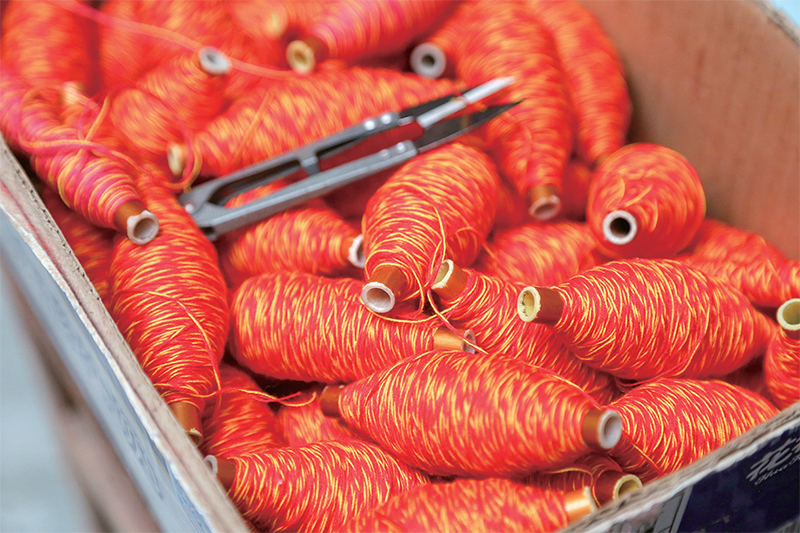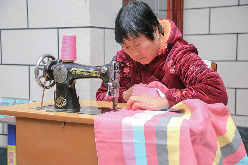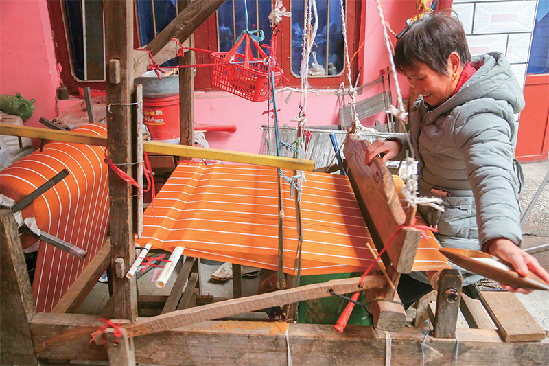 崔梅英介紹,代加工這種方式是“機隨人走”。如果有村民愿意代加工,需和“帶頭人”達成協(xié)議,把“帶頭人”的織布機和原料帶回家中,根據(jù)自己的時間,隨時織布?!斑@種方式非常適合賦閑在家的農(nóng)村婦女?!贝廾酚⒄f。