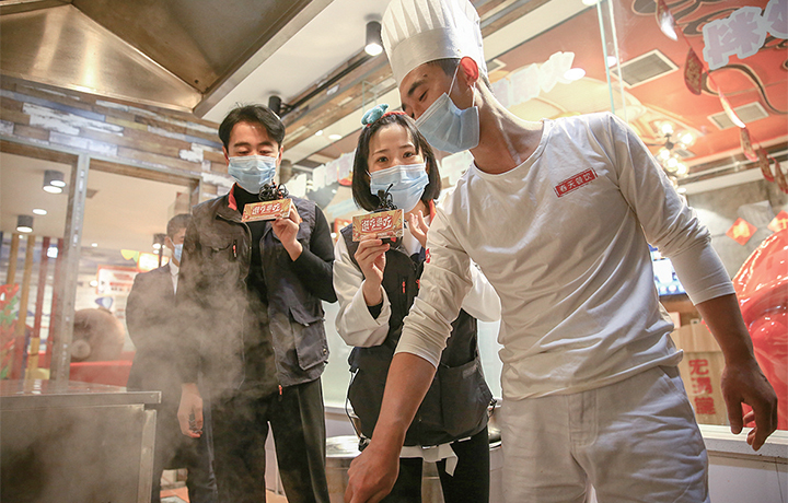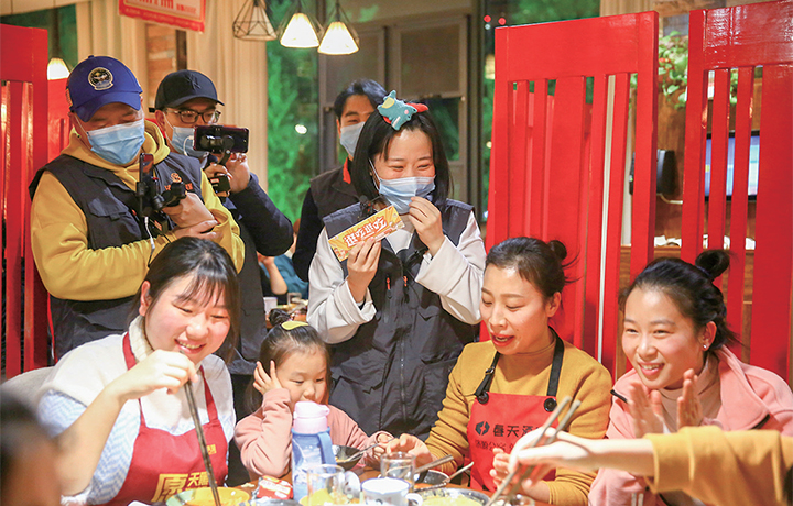 宏滿堂火鍋店負責人在直播間里毫不吝嗇。雙人霸王餐、火鍋底料、手撕毛肚……各種“白吃”福利送不停。直播間氣氛熱烈,引來6.2萬名網友在線觀看。眾多美味令網友贊嘆不已,直呼“看起來就很好吃”“好想吃”?!懊朗持辈セ顒?,不僅讓消費者有機會免費品嘗到我們的菜品,也為我們商家擴大了宣知名度?!痹摰曦撠熑吮硎荆@次直播活動取得了十分不錯的成效。