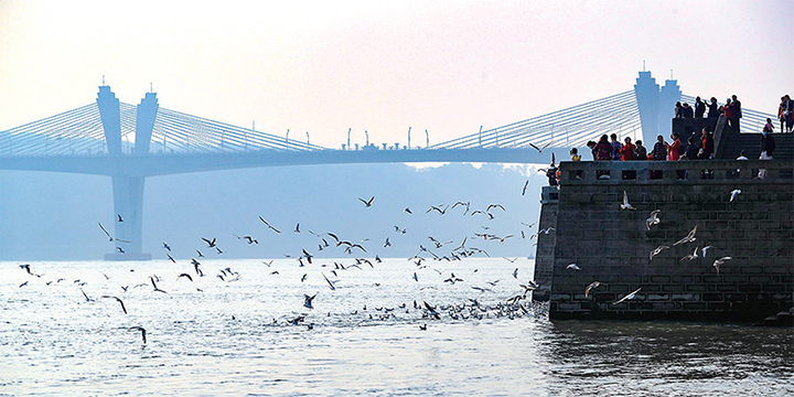 紅嘴鷗飛抵瀘州越冬,東門口長江邊聚集市民觀賞