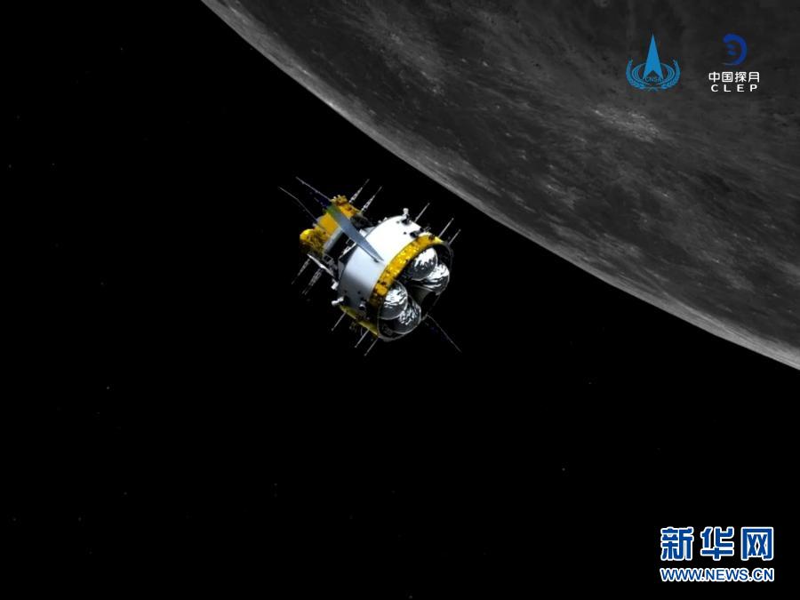 軌返組合體與上升器分離前模擬圖。記者從國(guó)家航天局獲悉,北京時(shí)間12月6日12時(shí)35分,嫦娥五號(hào)軌道器返回器組合體與上升器成功分離,進(jìn)入環(huán)月等待階段,準(zhǔn)備擇機(jī)返回地球。新華社發(fā)(國(guó)家航天局供圖)