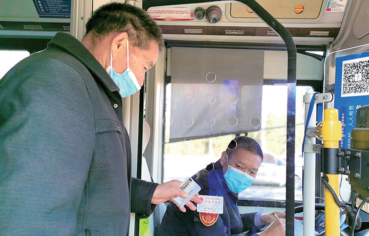 72歲的市民李小闖不會使用智能手機(jī),也忘了帶身份證。準(zhǔn)備坐車去醫(yī)院取藥的他,把醫(yī)??ㄟf給了公交車司機(jī),登記完姓名和電話后,順利乘車。