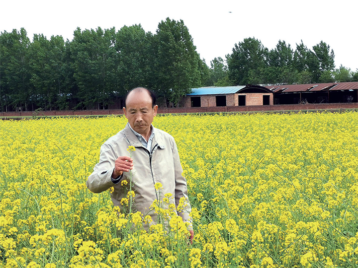 侯三元在白菜制種田查看花期情況 照片由綠茵種苗有限責(zé)任公司提供