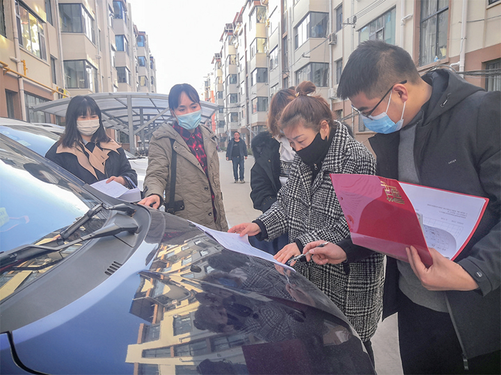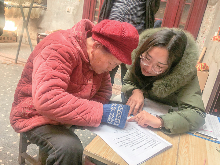 為居民講解調(diào)查問(wèn)卷