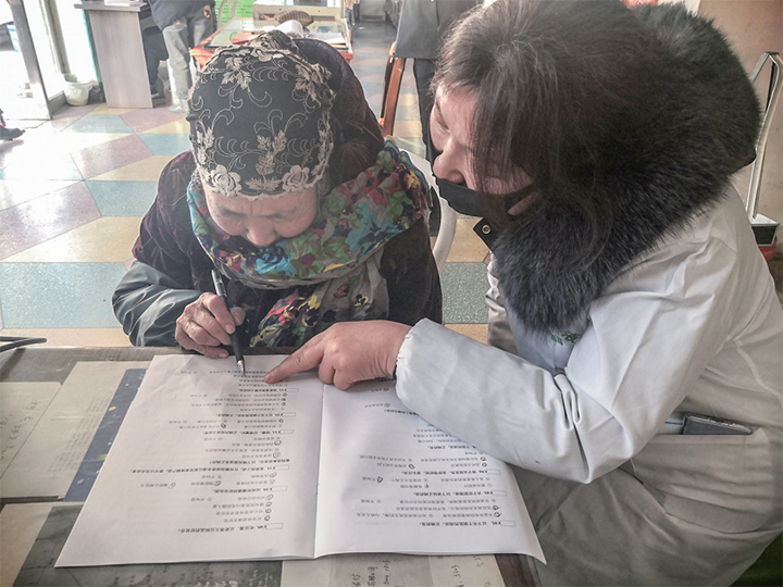 與此同時(shí),北海街道下街居委會(huì)衛(wèi)生所內(nèi),目不識(shí)丁的老人張紅霞也在調(diào)查員的協(xié)助下,認(rèn)真勾選問(wèn)卷答案。