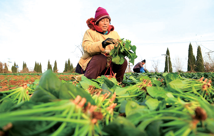 軹城鎮(zhèn)農(nóng)民在采收菠菜。