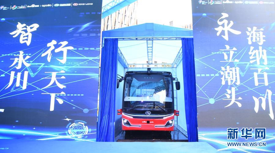 作為2020線上中國(guó)國(guó)際智能產(chǎn)業(yè)博覽會(huì)系列活動(dòng)之一,百度與金龍客車聯(lián)合研發(fā)的L4級(jí)自動(dòng)駕駛中巴在重慶市永川區(qū)首發(fā)(2020年9月17日攝)。新華社記者 王全超 攝