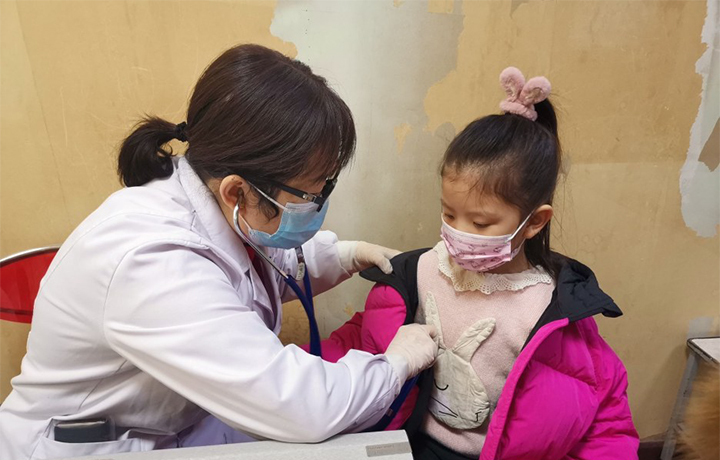 醫(yī)生在給呼吸道感染幼兒看病