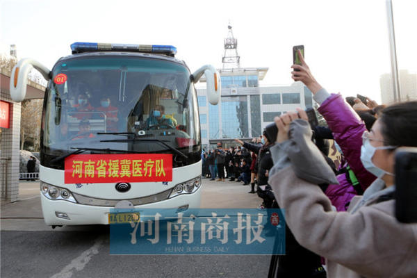 1月13日下午3時(shí)20分許,鄭州市緊急醫(yī)療救援中心,一輛接一輛的急救車輛駛出大門。車上統(tǒng)一貼有“河南省援冀醫(yī)療隊(duì)”字樣。一側(cè),是前來送行的人員和媒體。