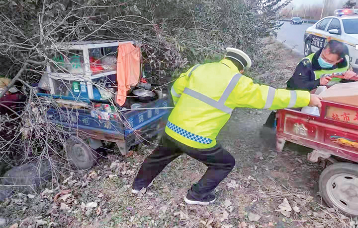 老人翻車求助 執(zhí)法人員伸手相助