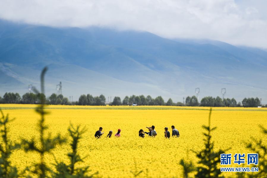 游客在青海門源回族自治縣的油菜花田中拍照(2020年7月22日攝)。新華社記者 吳剛 攝