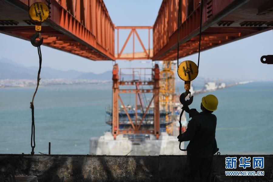 中鐵十一局工人在新建福廈鐵路湄洲灣跨海大橋建設現(xiàn)場施工(2020年11月2日攝)。新華社記者 宋為偉 攝