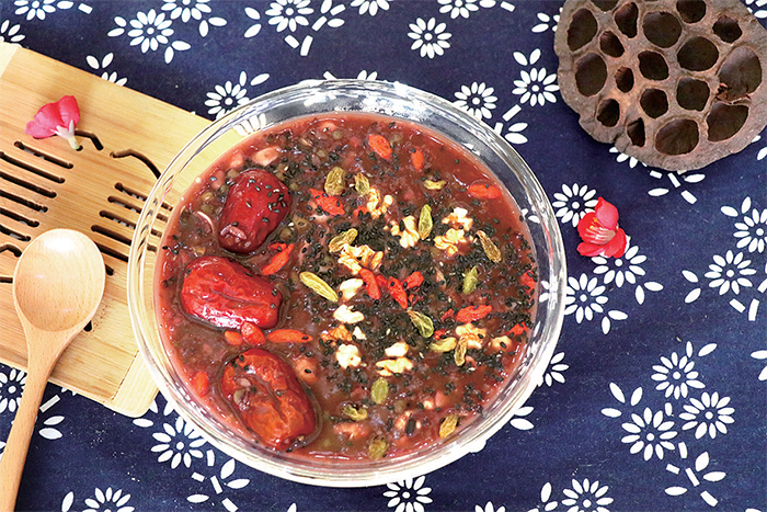 現(xiàn)在生活條件好了,大米、小米、黑米、桂圓、紅棗、蓮子、銀耳……各種食材融匯到一鍋之中,熬制時已是滿屋飄香,讓人垂涎欲滴。