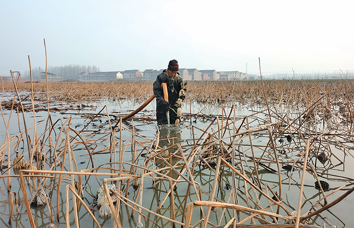 蓮藕獲豐收 藕農(nóng)采收忙