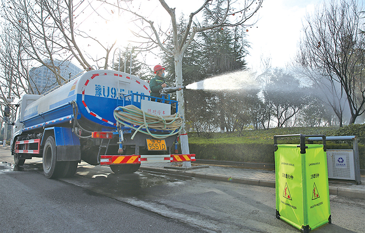 春暖花開,萬物復(fù)蘇。2月18日,園林工人正在給黃河大道的綠化帶澆水,為打造濟(jì)源良好生態(tài)環(huán)境貢獻(xiàn)力量。記者 李楠 攝