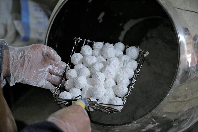 磨粉、制作餡料、蘸水、滾制……經(jīng)過一道道工序,圓滾滾的小“雪球”就做成了。由于用料講究、口味純正,傳統(tǒng)手工元宵成為人們記憶中“年”的味道。