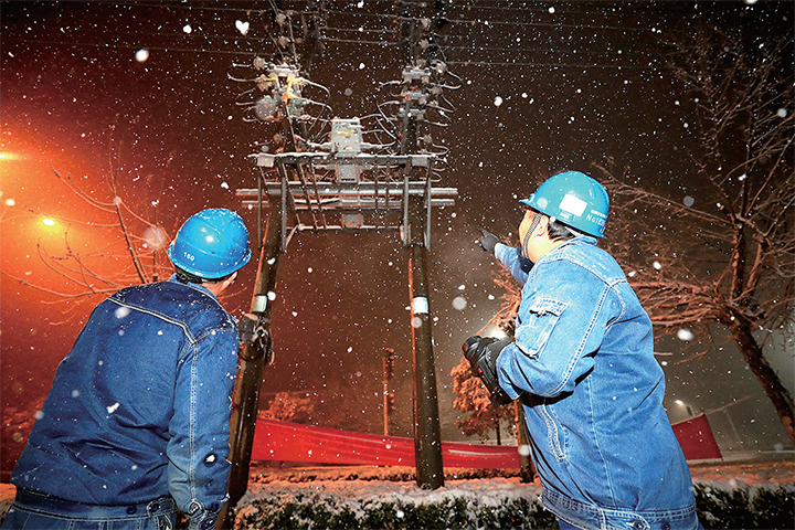 2月24日晚上,大雪紛飛,濟(jì)源郊區(qū)供電中心附近,工作人員趙國平和李東宣手持設(shè)備認(rèn)真地對轄區(qū)配電網(wǎng)線路進(jìn)行逐一巡查。當(dāng)晚,他們還加大巡視檢查力度,尤其是對轄區(qū)重要設(shè)備、重點(diǎn)區(qū)域和重點(diǎn)線路實(shí)行特訓(xùn),利用紅外測溫等設(shè)備加強(qiáng)電網(wǎng)運(yùn)行狀態(tài)診斷,針對薄弱環(huán)節(jié)及時制定應(yīng)急措施,從而確保線路設(shè)備安全可靠運(yùn)行。