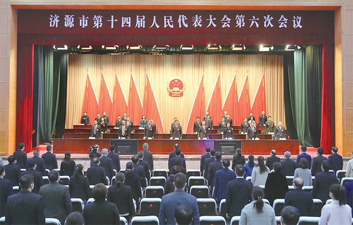 3月1日下午,在圓滿完成各項(xiàng)議程后,濟(jì)源市第十四屆人民代表大會(huì)第六次會(huì)議在行政區(qū)會(huì)議廳勝利閉幕。記者 李浩 攝