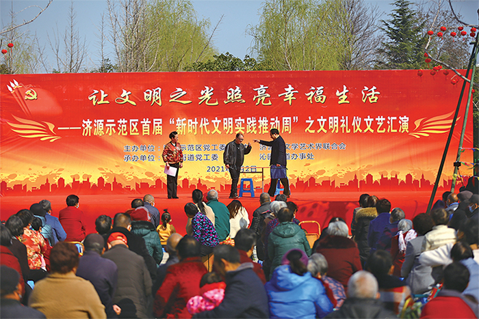 3月4日,示范區(qū)開展“送文藝節(jié)目”文明實踐主題日活動?;顒咏M織文藝志愿者、豫劇名家和非遺文化傳承人,以中華優(yōu)秀傳統(tǒng)文化、紅色文化、社會主義先進文化為主要內(nèi)容,編排形式新穎的文明行為宣傳文藝節(jié)目,走進文化廣場,走上鄉(xiāng)村文化大舞臺,開展文明行為、文明鄉(xiāng)風宣傳,為城鄉(xiāng)群眾送去文化大餐,教育引導群眾養(yǎng)成文明行為習慣。