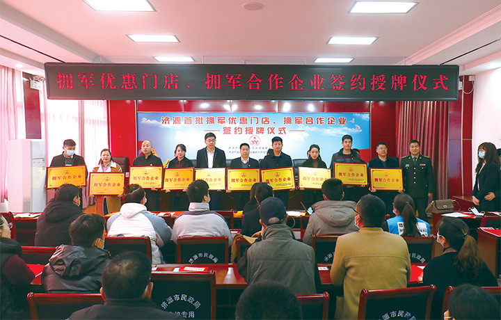濟(jì)源為首批擁軍優(yōu)惠門店、擁軍合作企業(yè)簽約授牌