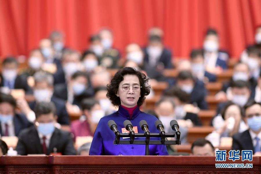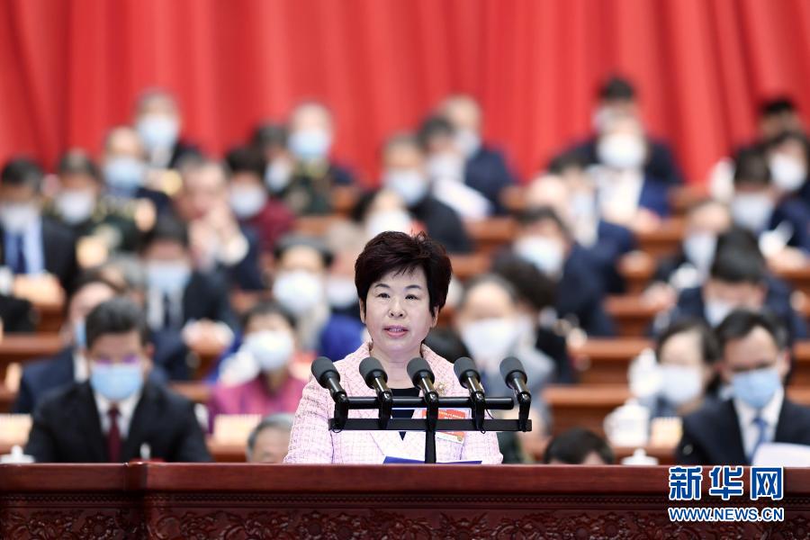 3月7日,全國政協(xié)十三屆四次會(huì)議在北京人民大會(huì)堂舉行第二次全體會(huì)議。這是韋震玲委員作大會(huì)發(fā)言。新華社記者 丁海濤 攝