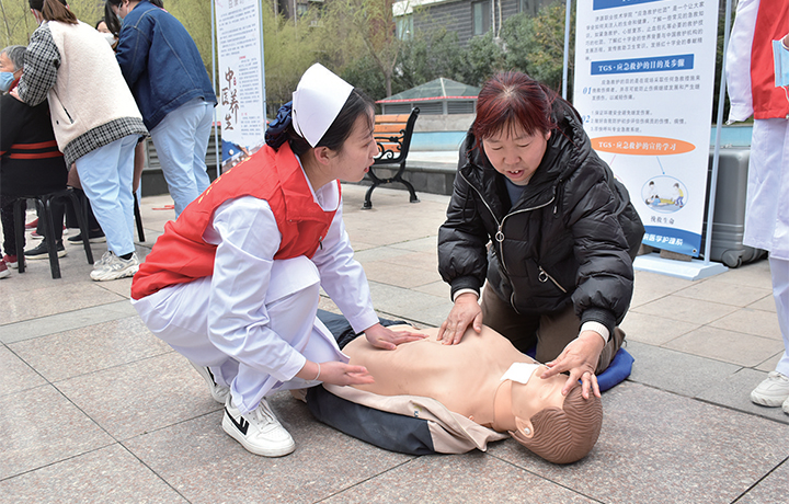 濟源職業(yè)技術學院護理系學生為居民普及應急救護知識