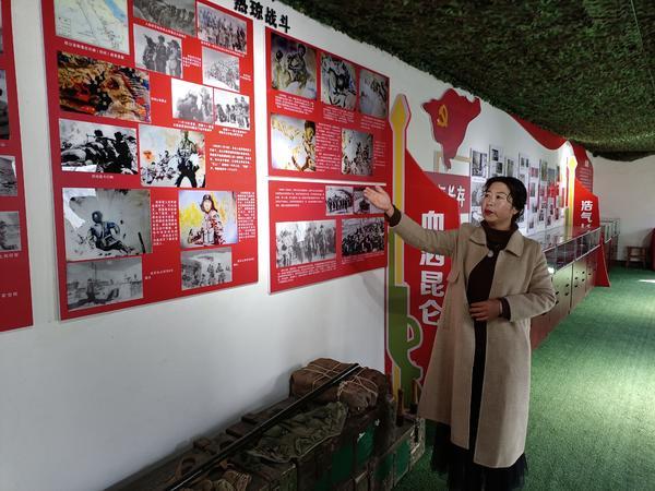王忠殿的親外甥女、王忠殿事跡陳列館館長陳海霞正在講述英雄的事跡