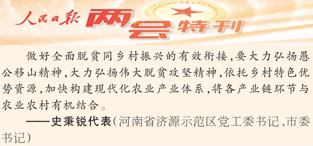 兩會(huì)期間,全國(guó)人大代表,示范區(qū)黨工委書(shū)記、市委書(shū)記史秉銳建議,依托鄉(xiāng)村特色優(yōu)勢(shì)資源,加快構(gòu)建現(xiàn)代化農(nóng)業(yè)產(chǎn)業(yè)體系,將各產(chǎn)業(yè)鏈環(huán)節(jié)與農(nóng)業(yè)農(nóng)村有機(jī)結(jié)合。