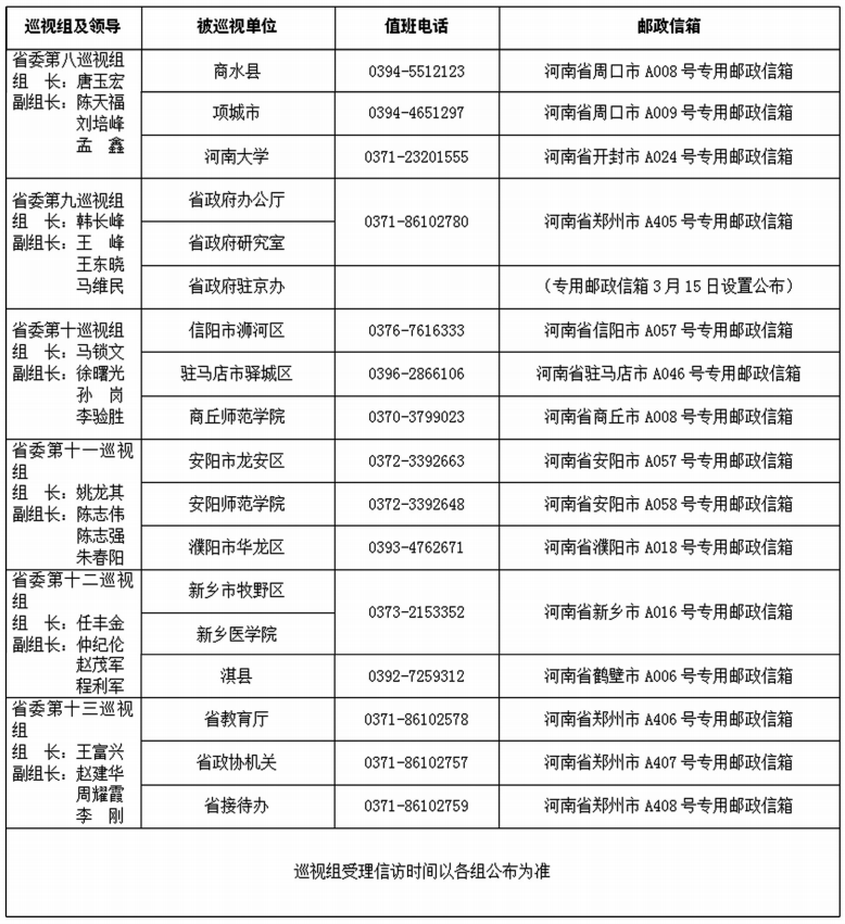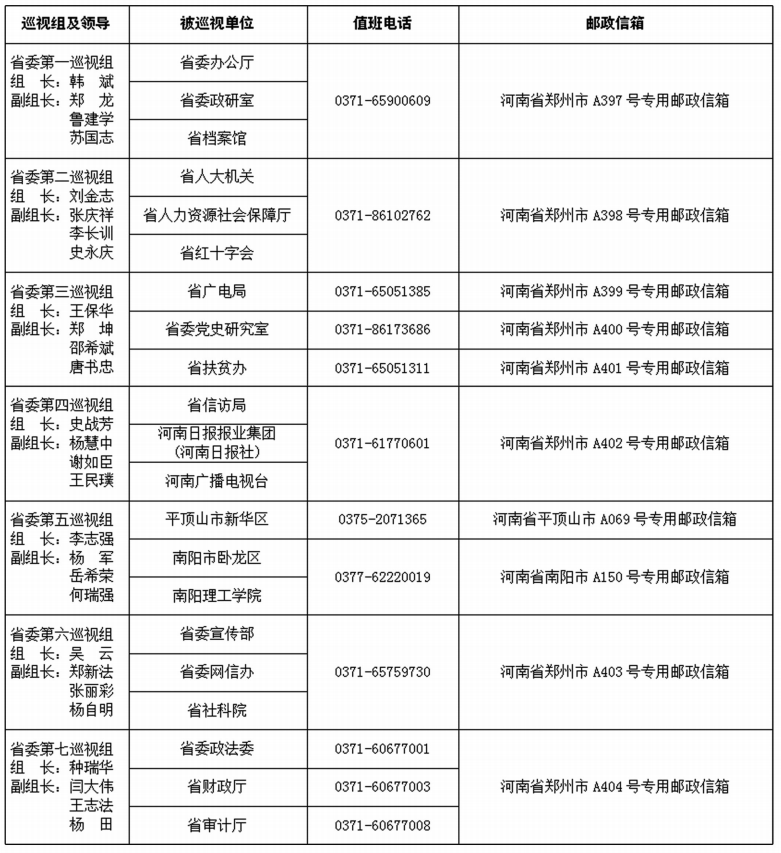 十屆省委第十輪巡視進(jìn)駐一覽表