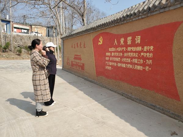 在黑巖村村口的宣誓墻前,記者看到,兩位游客參觀完情不自禁地舉起右拳重溫了入黨誓詞,并說道:“聽黨話,跟黨走,我們對(duì)黨的心永遠(yuǎn)不變?!?/p>