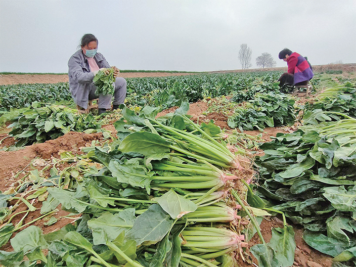 3月11日,在軹城鎮(zhèn)南李莊村,農(nóng)民在收菠菜。
