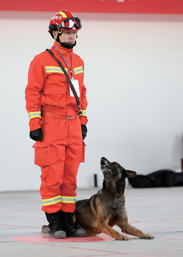 3月22日至24日,河南省消防救援隊伍第五屆搜救犬技術(shù)“比武”競賽在洛陽舉行,全省各支隊54只搜救犬參加“比武”競賽。其中,濟源共有3只搜救犬參賽,并在廢墟搜救、血跡搜索2個項目中取得全省第四名的成績。據(jù)了解,搜救犬的重要任務(wù)就是在突發(fā)事件現(xiàn)場中搜尋被困人員,被稱為“無聲的英雄”。 李楠 古少杰 攝