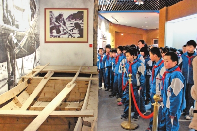 學生們在劉鄧大軍渡黃河紀念館內(nèi)參觀“愛國號”渡船 王為峰 攝