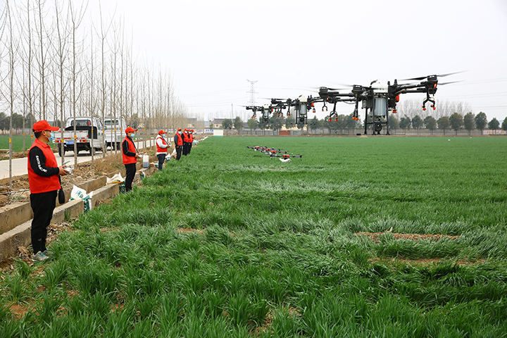 植保無人機(jī)集體作業(yè),噴灑營養(yǎng)液