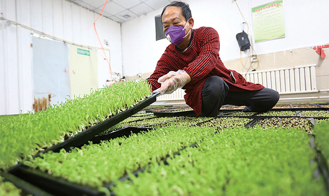 3月25日,承留鎮(zhèn)南杜村的濟(jì)源“新農(nóng)人”周昱臣在種植間里忙活著。菜框里一盆盆芽苗菜整齊擺放,看起來(lái)生機(jī)盎然。