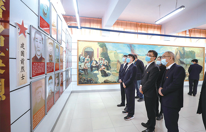 4月2日,濟源供電公司的黨員干部在烈士陵園的展館參觀。