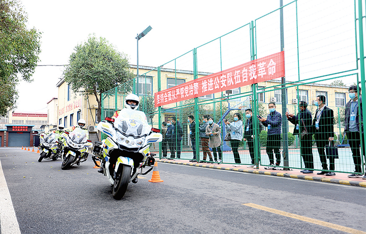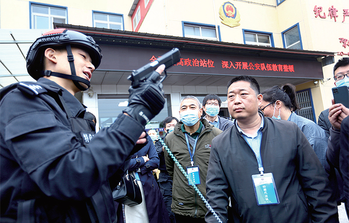 民警給參觀者介紹隊(duì)伍建設(shè)情況