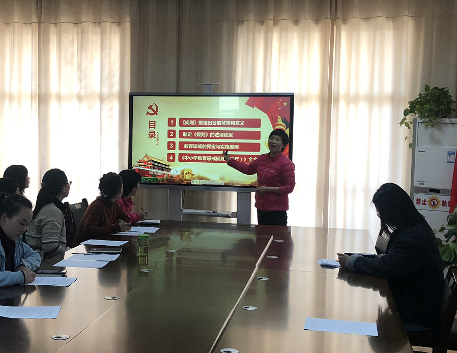 在師德師風(fēng)專題培訓(xùn)會中,園長李迎霞帶領(lǐng)天壇路幼兒園全體教師深入學(xué)習(xí)了《中小學(xué)教育懲戒規(guī)則(試行)》。李園長從出臺的背景與意義、制定的法律依據(jù)等四個方面進(jìn)行了詳細(xì)解讀,強(qiáng)調(diào)教師要將關(guān)愛與懲戒相輔相成,把握好一定的度,守住師德行為“紅線”,同時在對待幼兒教育問題上一和家長達(dá)成一致,學(xué)會有效溝通,做到事半功倍。