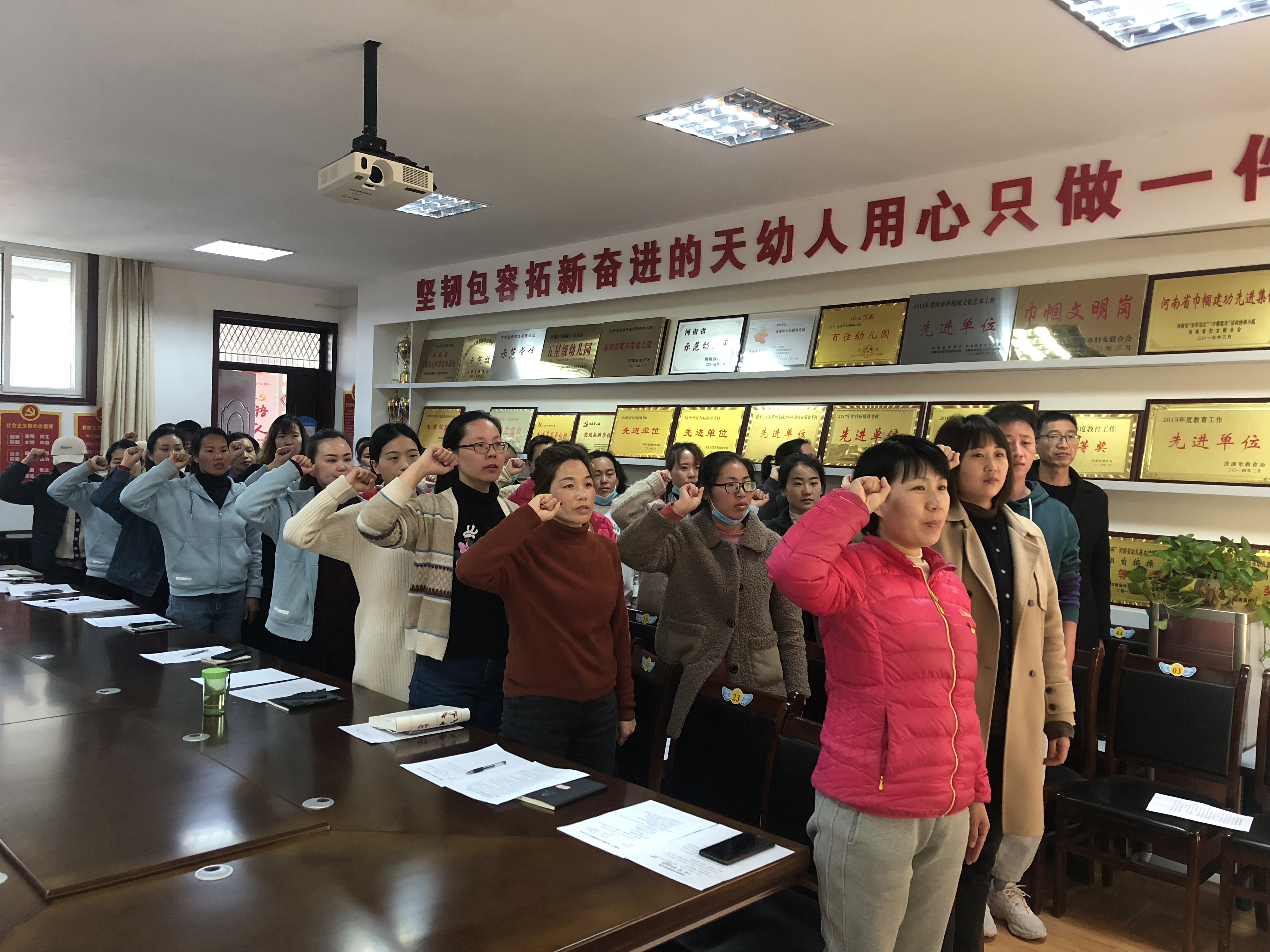 為落實(shí)教師宣誓制度、師德師風(fēng)承諾制度,幼兒園在全體教師會議中開展了重溫《河南教師誓詞》活動,老師們在李園長帶領(lǐng)下進(jìn)行莊嚴(yán)宣誓,并在承諾書上鄭重簽下了自己的名字,再次感受作為一名幼兒教師的榮譽(yù)感、使命感和責(zé)任感。