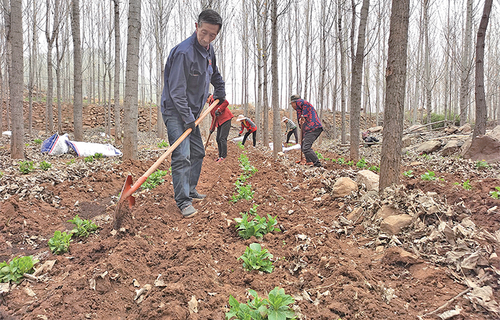 4月11日,在軹城鎮(zhèn)西軹城村的地里,30余位農(nóng)事“鐘點工”正在種地黃。