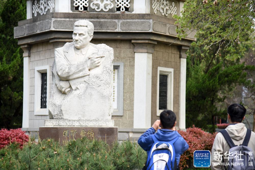 春日的山東臨沂華東革命烈士陵園,綠意盎然。在眾多的英烈紀(jì)念碑中,一座外國人雕像引人注目。