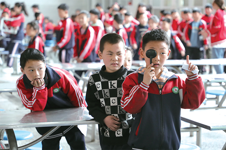 喬玉潔的喜悅來(lái)自?xún)煞矫妫阂皇且蝗骸按┘t馬甲的老師”來(lái)到學(xué)校,給學(xué)校送來(lái)了足球、羽毛球、乒乓球等文體用品;二是這群“穿紅馬甲的老師”在學(xué)校開(kāi)展了健康知識(shí)講座,并給同學(xué)們做了健康體檢,教大家唱了以前沒(méi)有聽(tīng)過(guò)的健康歌。