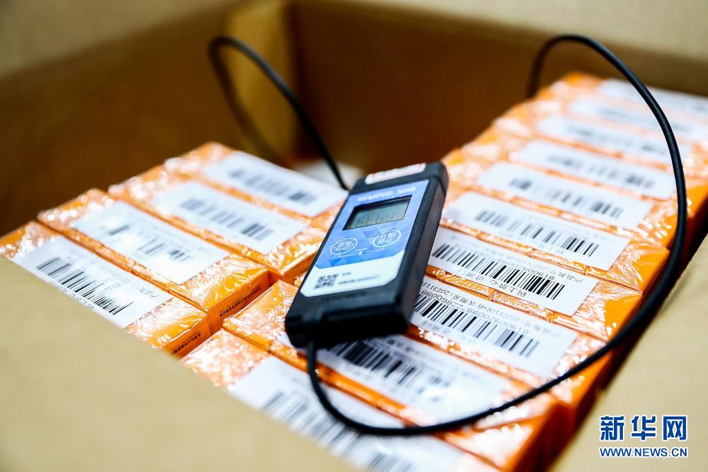 1月6日,在科興中維新冠病毒滅活疫苗成品冷庫(kù)內(nèi),每個(gè)裝有新冠病毒滅活疫苗成品的箱中都放有溫度連續(xù)監(jiān)控及超溫報(bào)警設(shè)備。新華社記者 張玉薇 攝