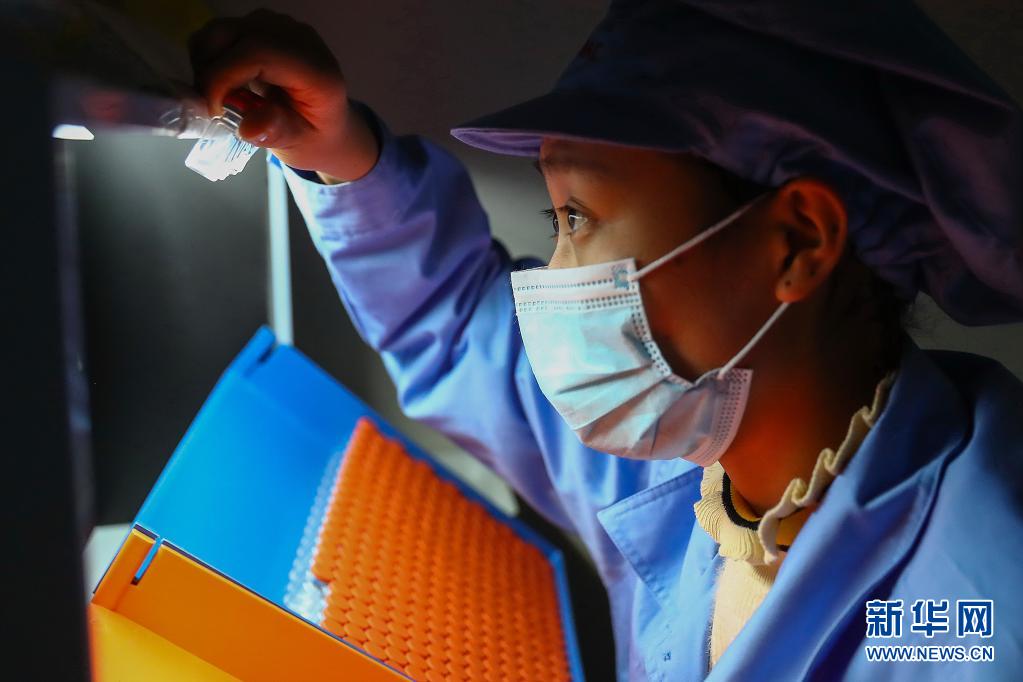1月6日,科興中維的工作人員在包裝車(chē)間對(duì)西林瓶包裝新冠病毒滅活疫苗進(jìn)行人工抽檢。新華社記者 張玉薇 攝