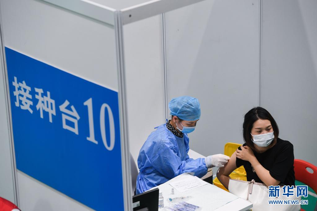 4月9日,市民在南京市鼓樓區(qū)新冠病毒疫苗集中接種點(diǎn)接種疫苗。新華社記者 李博 攝
