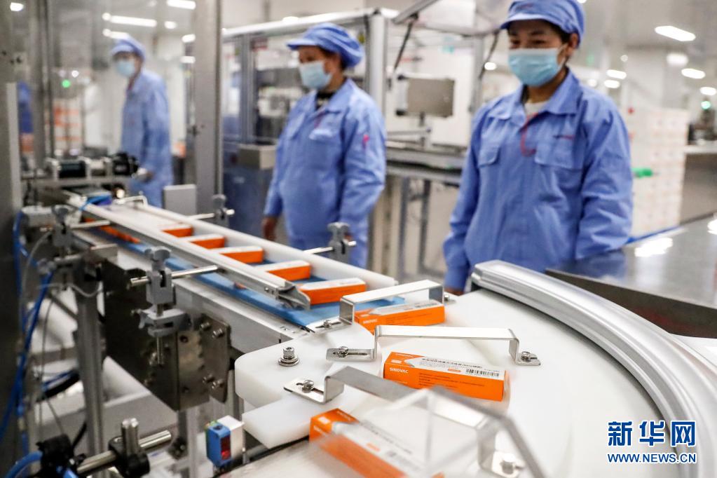1月6日,科興中維的工作人員在檢查新冠病毒滅活疫苗全自動(dòng)包裝線(xiàn)運(yùn)行情況。新華社記者 盧燁 攝