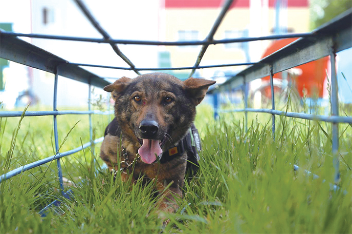 4月28日是國際搜救犬日。在示范區(qū)公安局特警支隊(duì)警犬大隊(duì),訓(xùn)導(dǎo)員對(duì)警犬的訓(xùn)練沒有因特殊日子的到來而停止。