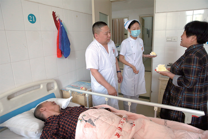 當(dāng)日是國際護士節(jié),濟源中醫(yī)院針灸康復(fù)中心為白衣天使送上蛋糕。自樂之余,白衣天使將蛋糕分享給住院患者,并祝愿他們早日康復(fù)。 記者 李楠 攝