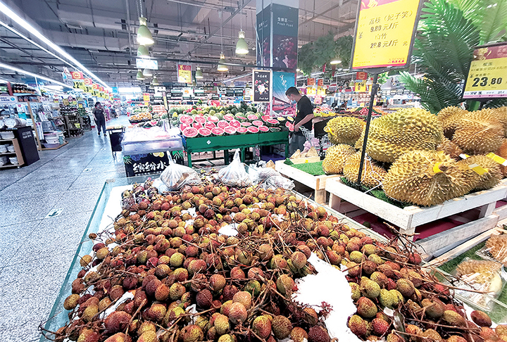 “新鮮的荔枝,個(gè)大核小,甜度非常高?!?月24日上午11時(shí)許,記者來到沁園路上的一家大型超市,剛走到水果區(qū),就聽見工作人員在向顧客推銷荔枝。