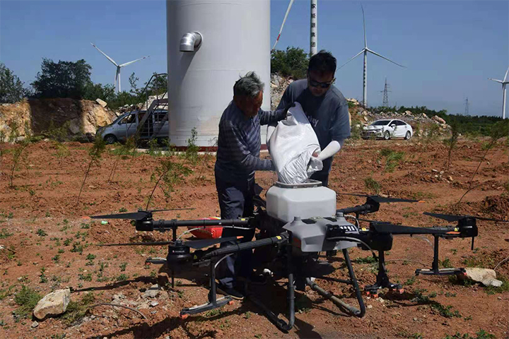 今年飛播造林將采用混播方式,其中,直升機飛播1.5萬畝,無人機飛播1萬畝。據(jù)了解,這是濟源首次大面積采用無人機開展飛播作業(yè)。無人機進行飛播作業(yè),輕便、靈活、快捷,起停方便,種子撒播更精準。