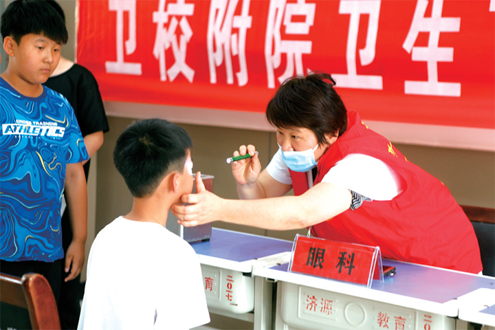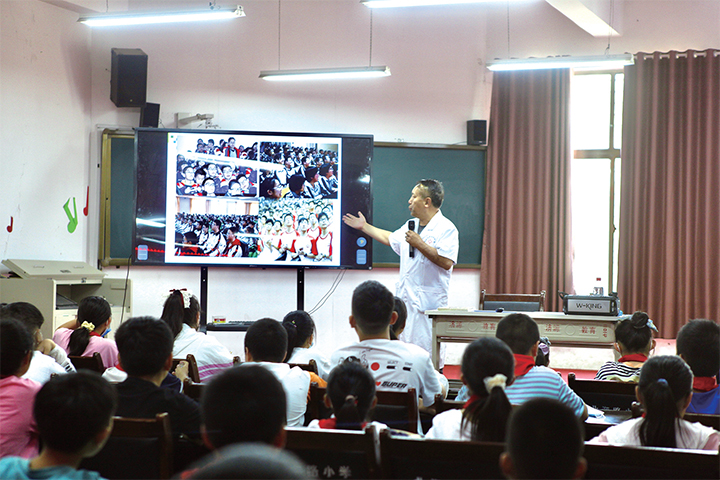 在孩子們期待的眼神中,濟源市衛(wèi)生學(xué)校附屬醫(yī)院眼科主任樊保紅緩緩走上講臺。“2019年,我省體檢135230人,檢出近視69769人,占比51.59%。”樊保紅將近視的現(xiàn)狀向同學(xué)們娓娓道來,“2019年的數(shù)據(jù)顯示,濟源近視的發(fā)病率達62.06%?!?/p>